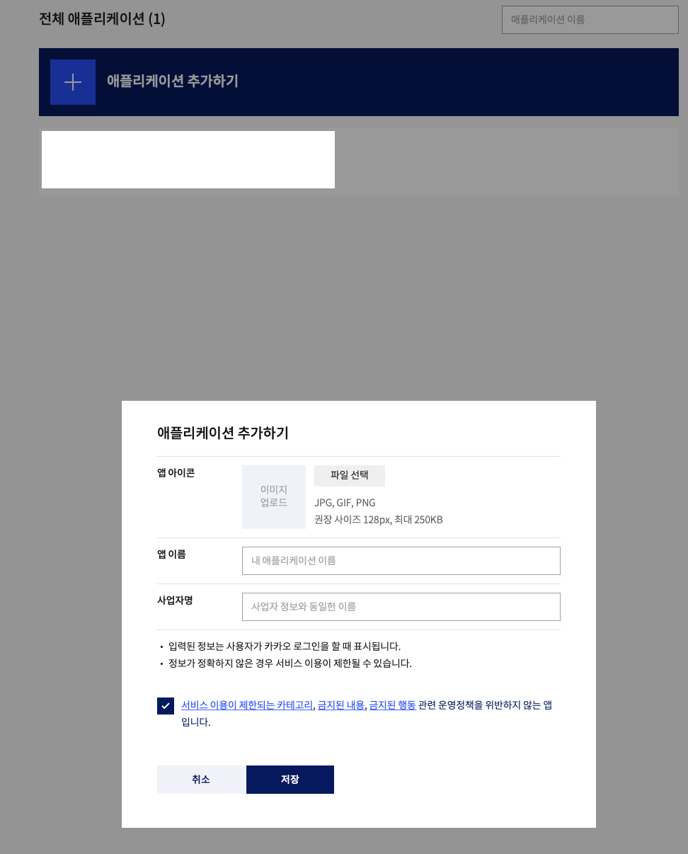 그리고 애플리케이션 추가하기 버튼을 클릭하면 아래와 같은 화면이 나온다.