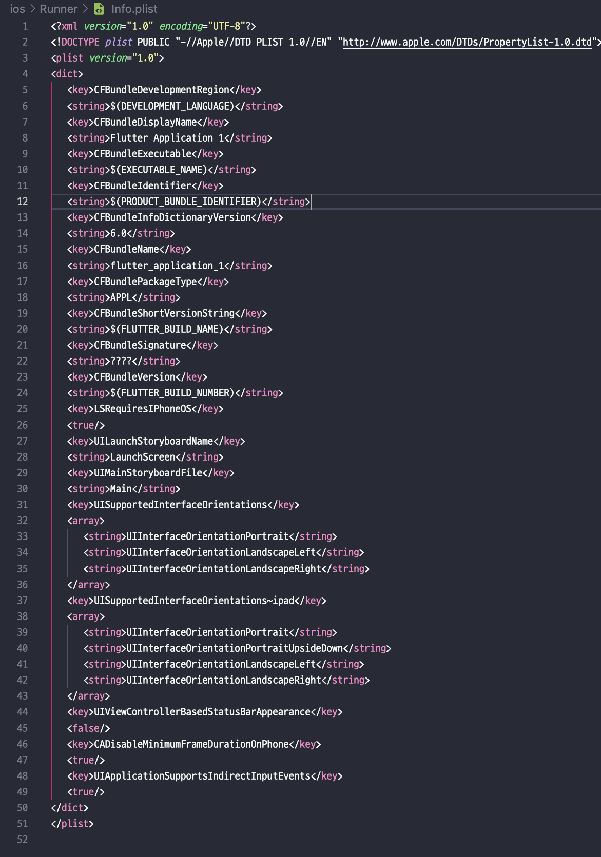 프로젝트> ios> Runner> Info.plist 에 들어가면