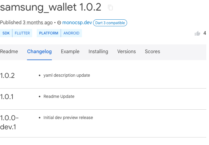 pub.dev의 Changelogd의 탭에 보여지게 된다.