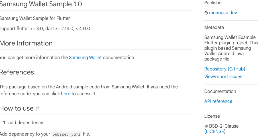 Samsung Wallet을 Flutter Plugin으로 개발하여 Pub.dev에다가 Publish까지 끝냈다. 원래는 끝낸 후 곧바로 어떻게 개발하게 되었는지, 그리고 한국어 Readme를 작성하려했는데 항상 그렇듯 시간이 잘 따라주