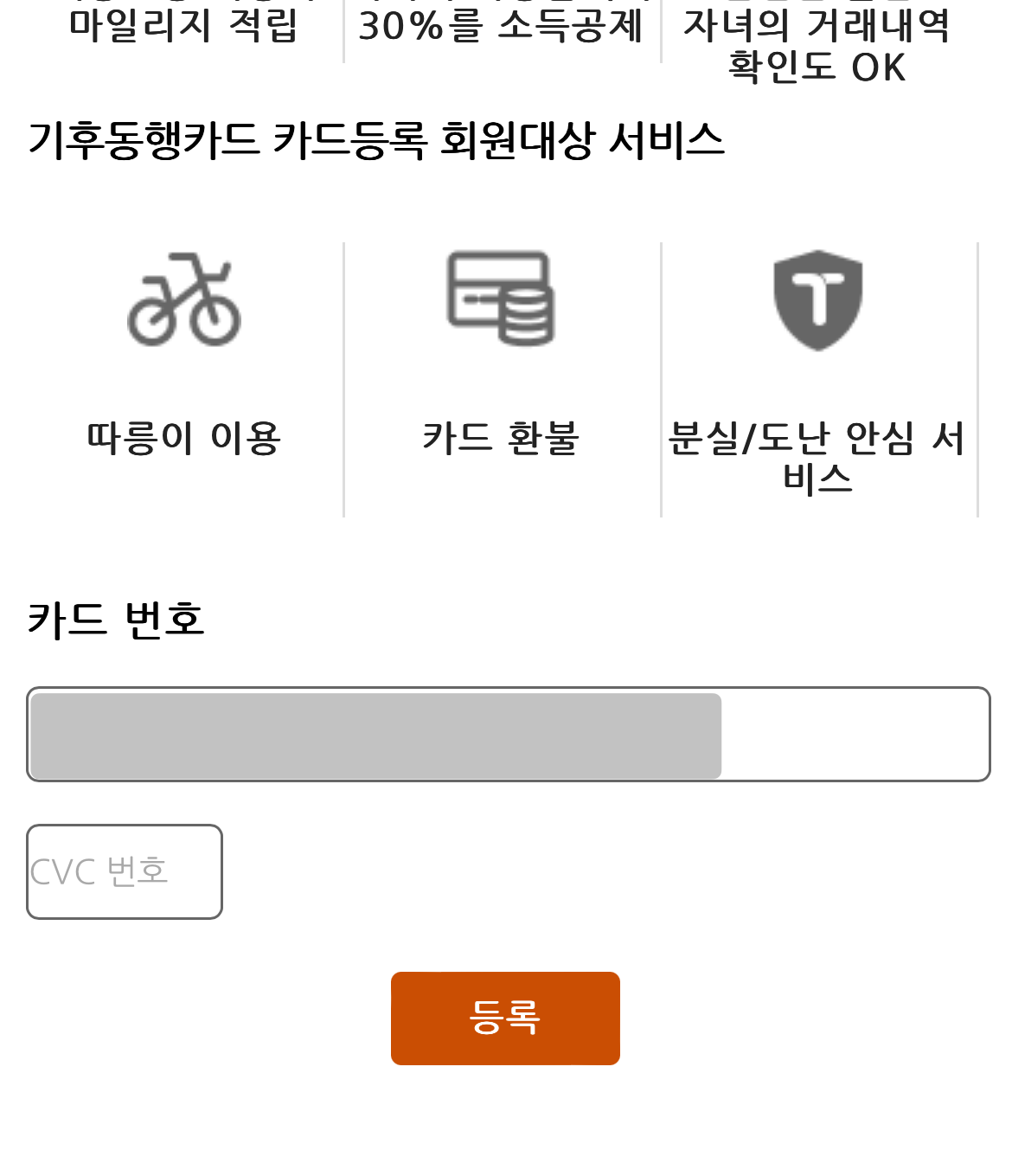 여기서 구매한 기후동행카드 뒤에 보면 있는 번호를 등록해준다. 괄호 안은 cvc번호이므로 제외하고 작성해 준다.